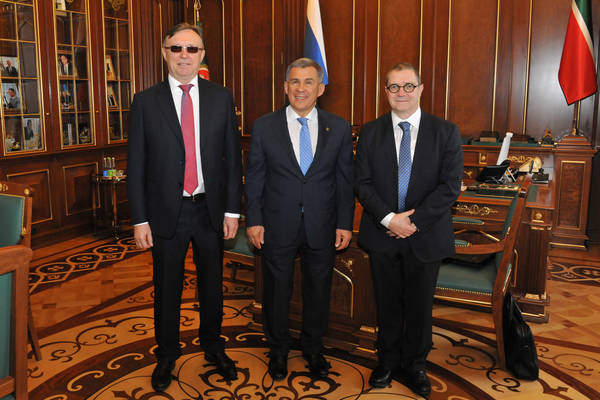 Встреча Президента Республики Татарстан Р.Н. Минниханова с сопредседателем Совета директоров Корпорации «Федерал-Могул Холдингс», генеральным директором «Федерал-Могул Пауэртрейн» Райнером Юкштоком.фото Р.Кадыров.