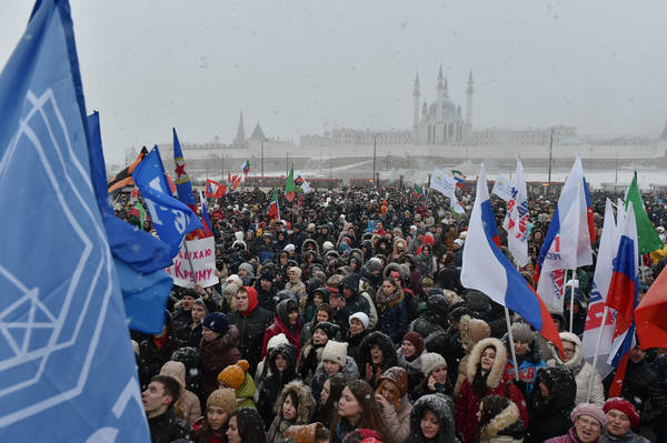 Митинг, посвященный присоединению Крыма. Принимает участие Президент Республики Татарстан Р.Н.Минниханов. Фото Марсель Бадыкшин