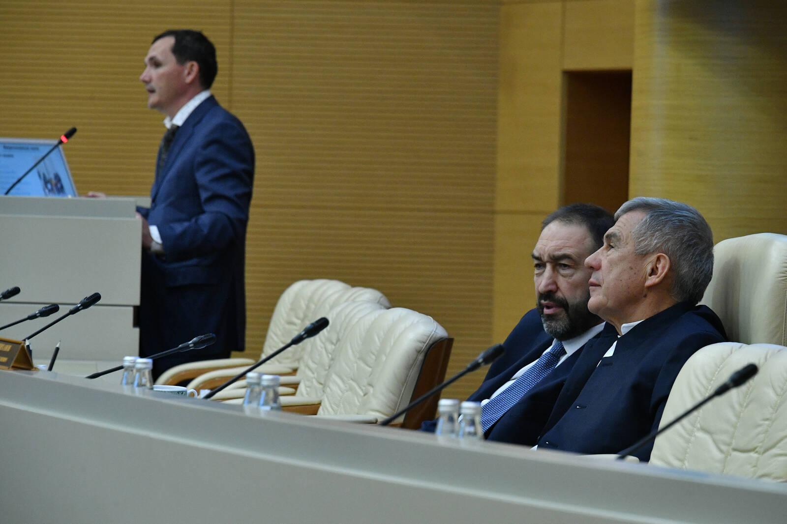 Расширенное заседание учёного совета Казанского (Приволжского) федерального университета. Принимают участие Министр науки и высшего образования Российской Федерации Валерий Николаевич Фальков, Премьер-министр Республики Татарстан А.В.Песошин.