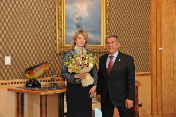 Встреча Президента Республики Татарстан Р.Н.Минниханова с президентом ЗАО "Когнитив" О.А.Усковой.фото Р.Кадыров