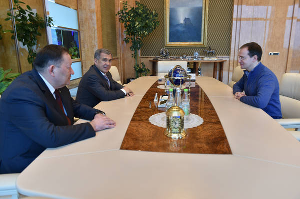 Встреча Президента Республики Татарстан Р.Н. Минниханова с Министром культуры Российской Федерации В.Р. Мединским. Фото Марсель Бадыкшин