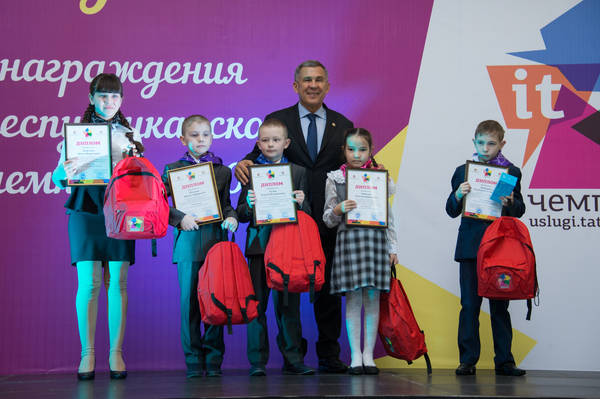 Торжественная церемония награждения победителей республиканского конкурса «IT-чемпион» - 2015. Принимает участие Президент Республики Татарстан Р.Н. Минниханов. Фото: Михаил Фролов