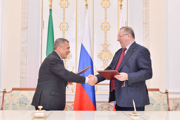 Встреча Президента Республики Татарстан Р.Н. Минниханова с Президентом, председателем правления ОАО «АК «Транснефть» Николаем Петровичем Токаревым Подписание Соглашения между Республикой Татарстан и АО «АК «Транснефть» о взаимном сотрудничестве. Фото Марата Хусаинова.