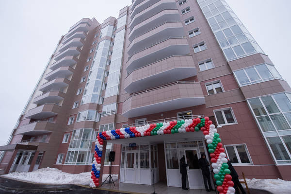 Торжественная церемония открытия 88-квартирного жилого дома для молодых ученых и специалистов научных учреждений г.Казани, подведомственных Федеральному агентству научных организаций. Принимают участие руководитель Федерального агентства научных организаций Михаил Михайлович Котюков и Президент Республики Татарстан Р.Н.Минниханов. Фото: Михаил Фролов