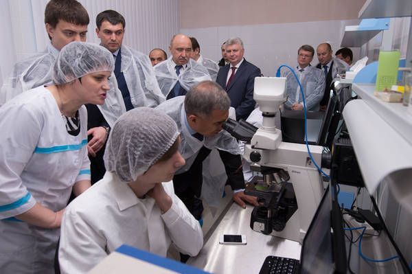 Торжественная церемония открытия международного научно-инновационного Центра нейрохимии и фармакологии ФГБУН Института органической и физической химии имени А.Е. Арбузова Казанского научного центра Российской академии наук. Принимают участие руководитель Федерального агентства научных организаций М.М.Котюков и Президент Республики Татарстан Р.Н.Минниханов. Фото: Михаил Фролов