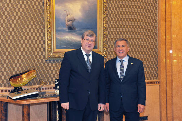 Встреча Президента Республики Татарстан Р.Н. Минниханова с руководителем Федеральной службы по экологическому, технологическому и атомному надзору Алексеем Владиславовичем Алешиным. Фото: Михаил Фролов