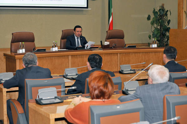 Заседание Совета директоров ОАО "Татспиртпром". Проводит Премьер-министр Республики Татарстан И.Ш.Халиков. фотог Р.Кадыров.