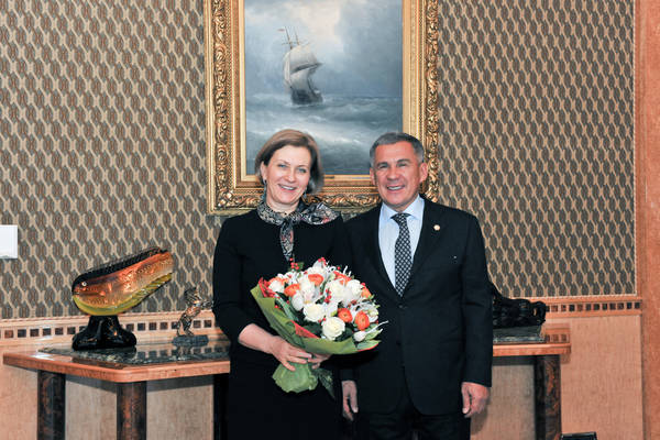 Встреча Президента Республики Татарстан Р.Н.Минниханова с Руководителем Федеральной службы по надзору в сфере защиты прав потребителей и благополучия человека А.Ю.Поповой.фото Р.Кадыров.