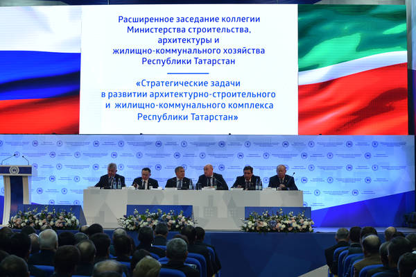 Расширенное заседание коллегии Министерства строительства, архитектуры и жилищно-коммунального хозяйства Республики Татарстан по итогам деятельности за 2015 год и задачам на 2016 год. Принимает участие Президент Республики Татарстан Р.Н. Минниханов. Фото Марсель Бадыкшин