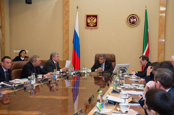 Заседание Совета директоров ОАО «Татнефтехиминвест-холдинг». Проводит Председатель Совета директоров ОАО «Татнефтехиминвест-холдинг», Президент Республики Татарстан Р.Н. Минниханов. Фото: Михаил Фролов