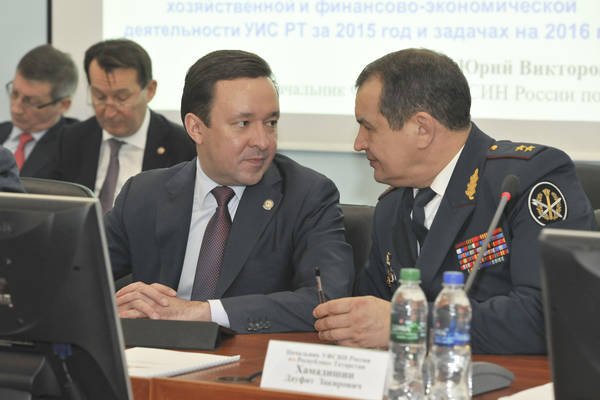 Заседание коллегии Управления Федеральной службы Российской Федерации по контролю за оборотом наркотиков по Республике Татарстан «О результатах оперативно-служебной деятельности Управления Федеральной службы по контролю за оборотом наркотиков России по Республике Татарстан за 2015 год и задачах на 2016 год». Принимает участие Премьер-министр Республики Татарстан И.Ш.Халиков.: фото Михаила Козловского