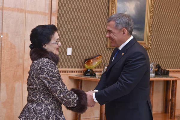 Чествование Президентом Республики Татарстан Р.Н.Миннихановым заслуженной артистки Российской Федерации, народной артистки Республики Татарстан, лауреата Государственной премии Республики Татарстан им. Г. Тукая Нелли Хакимовны Гареевой. Фото Марсель Бадыкшин