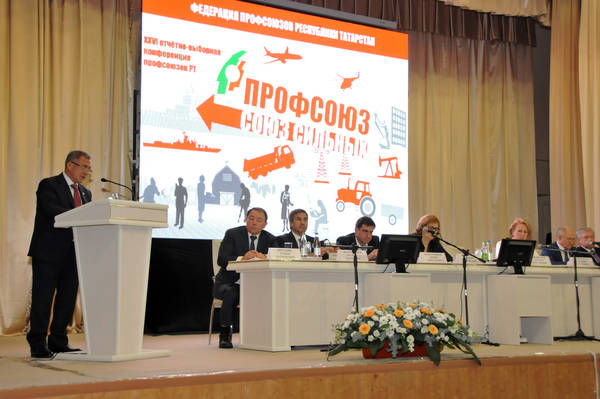 XXVI отчетно-выборная Конференция профсоюзов Республики Татарстан. Принимает участие Президент Республики Татарстан Р.Н. Минниханов.