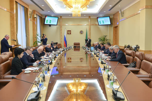 Заседание Совета директоров ПАО «Татнефть». Проводит Президент Республики Татарстан, председатель Совета директоров ПАО «Татнефть» Р.Н. Минниханов. Фото Марсель Бадыкшин