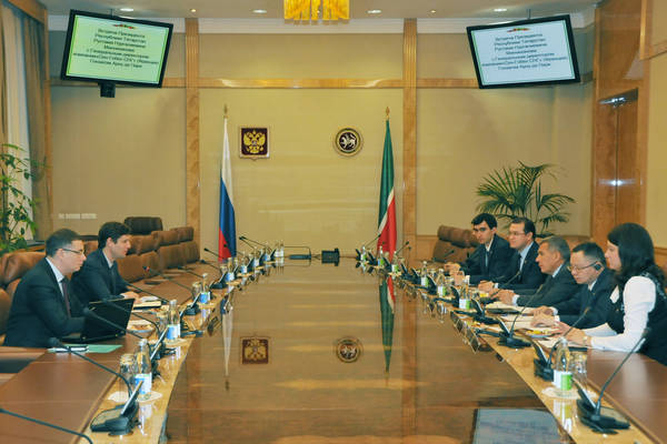 Встреча Президента Республики Татарстан Р.Н. Минниханова с Генеральным директором компании «Сен-Гобен СНГ» (Франция) Гонзагом Арну де Пире.фото Р.Кадыров.