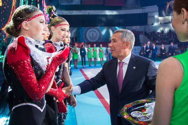 Торжественная церемония открытия чемпионата и первенства мира по акробатическому рок-н-ролу, чемпионата и первенства Европы по акробатическому рок-н-роллу. Принимает участие Президент Республики Татарстан Р.Н. Минниханов. Фото: Михаил Фролов