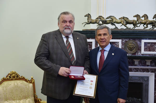 Церемония вручения Международной премии им. А.Н.Туполева академику Российской академии наук Е.Н. Каблову. Принимает участие Президент Республики Татарстан Р.Н.Минниханов. Фото Марсель Бадыкшин