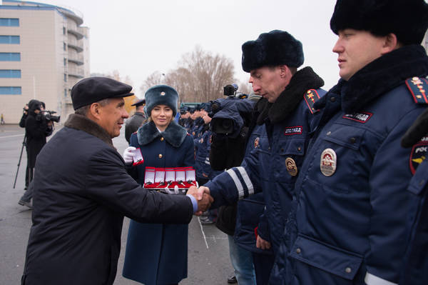 Торжественное мероприятие по вручению служебного автотранспорта подразделениям ГИБДД и дежурной части управлений, отделов (отделений) Министерства внутренних дел России по городским округам и муниципальным районам Республики Татарстан. Фото: Михаил Фролов