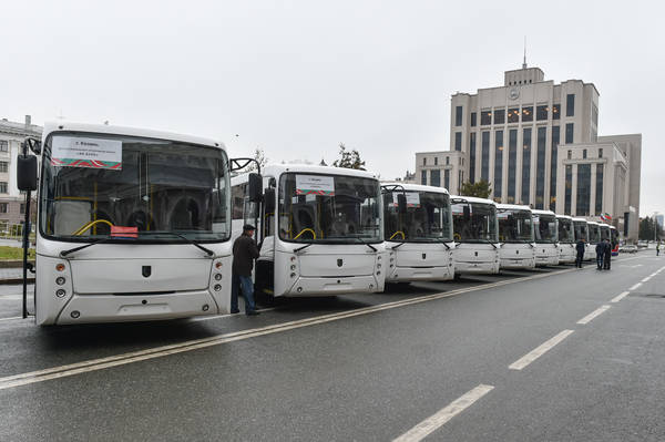 Торжественная церемония вручения автобусов детско-юношеским спортивным школам по хоккею. Принимает участие Президент Республики Татарстан Р.Н. Минниханов. Фото Марсель Бадыкшин