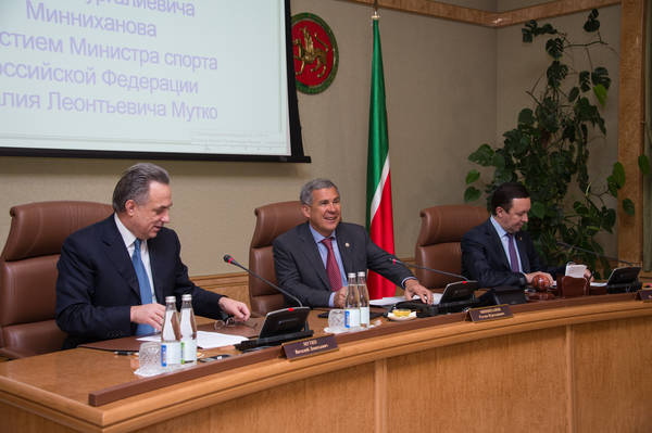 Заседание Республиканского организационного комитета «Россия 2018» по подготовке и проведению чемпионата мира по футболу 2018 года в г.Казани под председательством Президента Республики Татарстан Р.Н.Минниханова с участием Министра спорта Российской Федерации В.Л.Мутко. Фото: Михаил Фролов