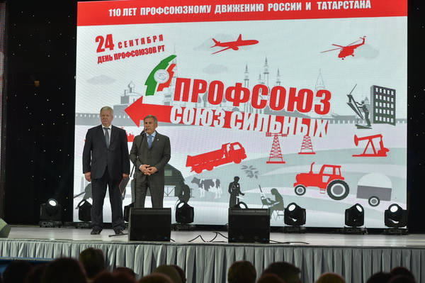 Торжественное мероприятие, посвященное 110-летию профсоюзного движения России и Республики Татарстан. Принимает участие Президент Республики Татарстан Р.Н. Минниханов. Фото Марсель Бадыкшин
