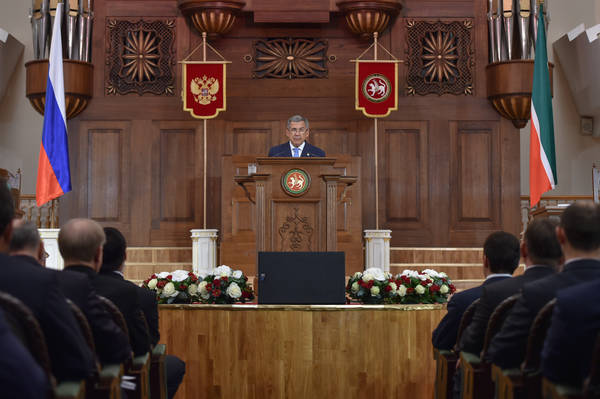 Одиннадцатое заседание Государственного Совета Республики Татарстан пятого созыва «Ежегодное послание Президента Республики Татарстан Государственному Совету Республики Татарстан о внутреннем и внешнем положении республики». Фото Марсель Бадыкшин