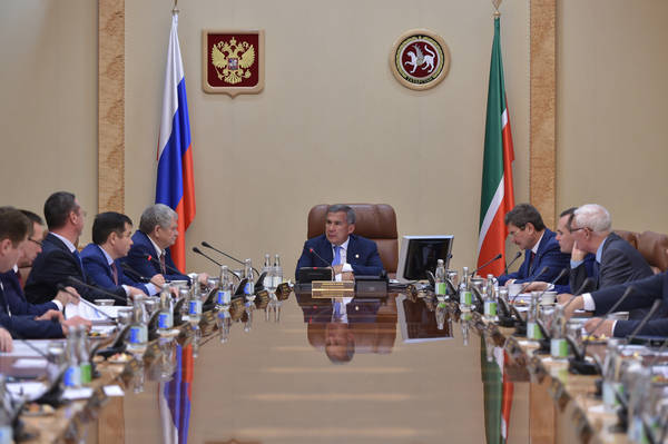 Заседание Совета директоров ПАО «Татнефть». Проводит Президент Республики Татарстан, председатель Совета директоров ПАО «Татнефть» Р.Н. Минниханов. Фото: Михаил Фролов