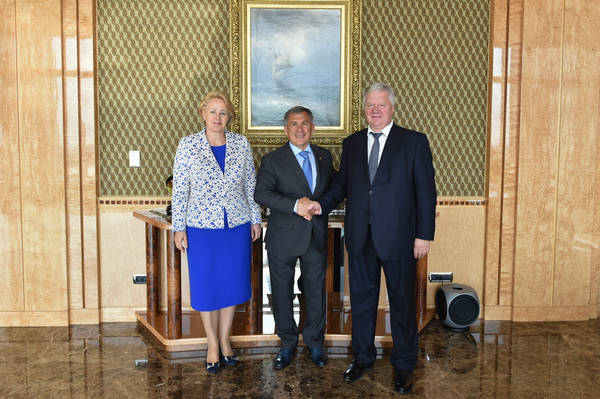 Встреча Президента Республики Татарстан Р.Н. Минниханова с председателем Федерации независимых профсоюзов России Михаиилом Викторовичем Шмаковым. Фото Марсель Бадыкшин