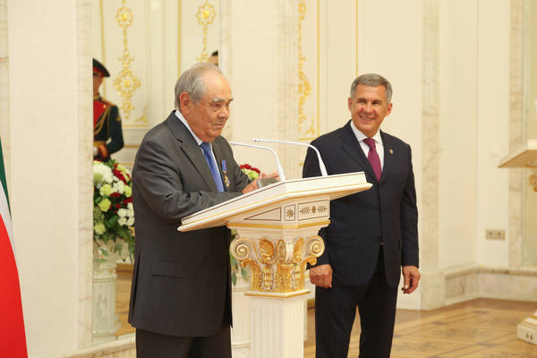 Церемония вручения ордена «Дуслык» Государственному Советнику Республики Татарстан М.Ш. Шаймиеву Президентом Республики Татарстан Р.Н. Миннихановым. Фото Эдуард Мингазизов