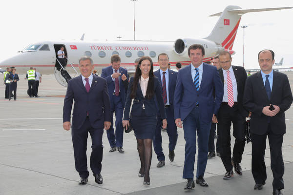 Прибытие в Республику Татарстан министра экономики Турецкой Республики Нихата Зейбекджи. Встречает врио Президента РТ Р.Н.Минниханов. Фото Эдуард Миргазизов