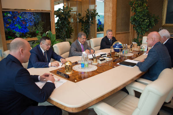 Встреча временно исполняющего обязанности Президента Республики Татарстан Р.Н. Минниханова с председателем Комитета по экономической, бюджетно-финансовой и налоговой политике Государственного совета Республики Крым Виталием Германовичем Нахлупиным. Фото: Михаил Фролов