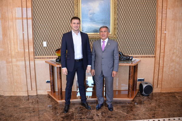 Встреча временно исполняющего обязанности Президента РТ Р.Н.Минниханова с председателем координационного совета ВОО «Молодая гвардия Единой России» Денисом Давыдовым. Фото: Михаил Фролов