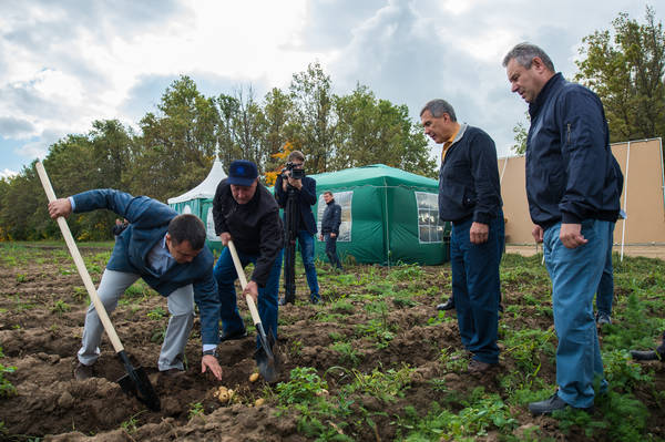 Ознакомление с ходом уборки картофеля. Принимает участие временно исполняющий обязаноости Президента Республики Татарстан Р.Н.Минниханов. Фото: Михаил Фролов