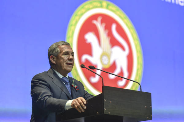 Открытие XII Европейского конгресса по катализу ЕВРОПАКАТ-2015 «Катализ: сбалансированное использование ископаемых и возобновляемых ресурсов» Принимает участие временно исполняющий обязанности Президента Республики Татарстан Р.Н. Минниханов. Фото Марсель Бадыкшин