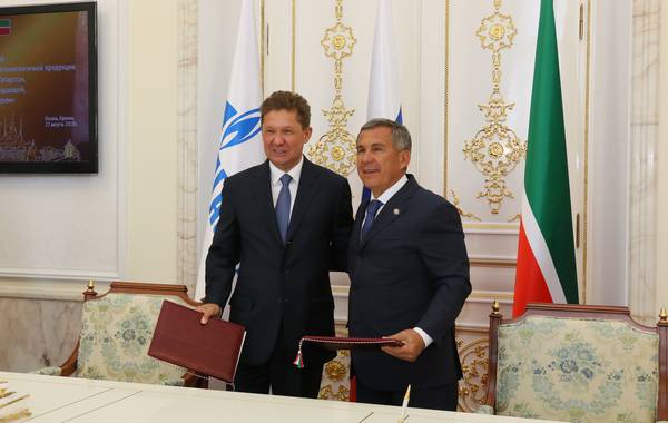 Встреча временно исполняющего обязанности Президента Республики Татарстан Р.Н. Минниханова с Председателем правления ОАО «Газпром» Алексеем Борисовичем Миллером. Подписание Дорожной карты проекта «Расширение использования высокотехнологичной продукции организаций Республики Татарстан, в том числе импортозамещающей, в интересах ОАО «Газпром».: фото Михаила Козловского