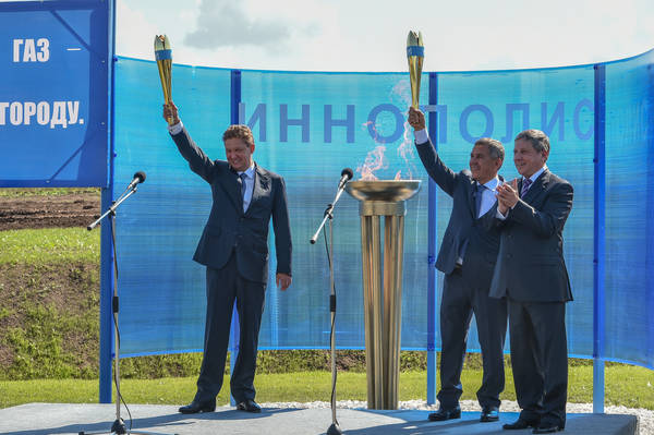 Торжественная церемония пуска газа по случаю завершения строительства газопровода-отвода до н.п. Елизаветино магистрального газопровода «Казань-Горький». Принимают участие Председатель правления ОАО «Газпром» Алексей Борисович Миллер, временно исполняющий обязанности Президента Республики Татарстан Р.Н. Минниханов. Фото Марсель Бадыкшин