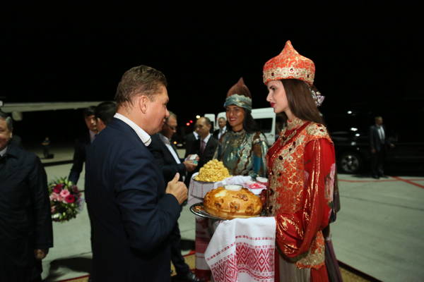 Прибытие в Республику Татарстан Председателя правления ОАО «Газпром» Алексея Борисовича Миллера. Встречает Премьер-министр Республики Татарстан И.Ш. Халиков: фото Михаила Козловского