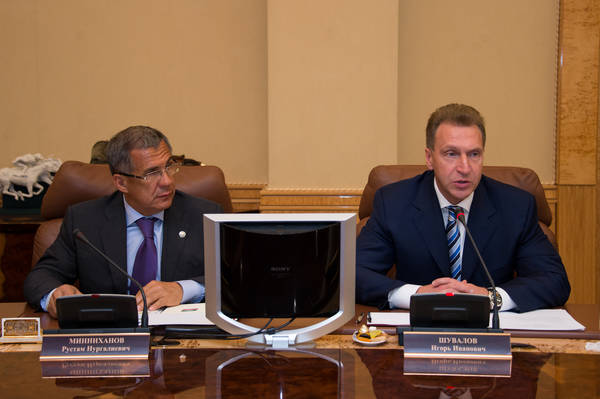 Совещание по вопросу развития жилищного строительства. Проводит Первый заместитель Председателя Правительства Российской Федерации Игорь Иванович Шувалов. Принимает участие временно исполняющий обязанности Президента Республики Татарстан Р.Н. Минниханов. Фото: Михаил Фролов