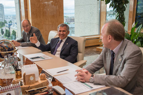 Встреча временно исполняющего обязанности Президента Республики Татарстан Р.Н. Минниханова с Председателем Правления – генеральным директором ООО «Газпром газомоторное топливо» Михаилом Владимировичем Лихачевым. Фото: Михаил Фролов