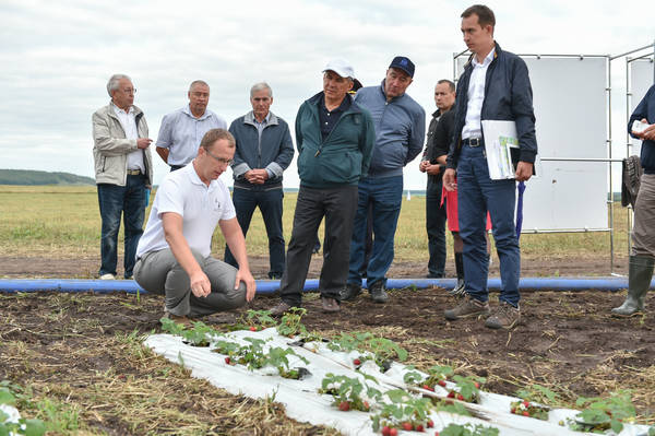 Рабочая поездка временно исполняющего обязанности Президента Республики Татарстан Р.Н. Минниханова в Альметьевский муниципальный район с целью ознакомления с ходом уборочных работ и реализации республиканских инвестиционных программ. Фото Марсель Бадыкшин