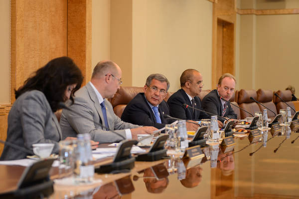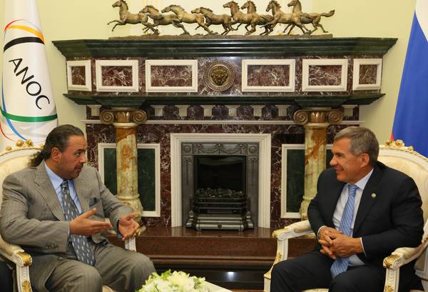 Встреча временно исполняющего обязанности Президента Республики Татарстан Р.Н. Минниханова с президентом Ассоциации национальных олимпийских комитетов шейхом Ахмадом Аль-Фахад Аль Сахабом: фото Михаила Козловского