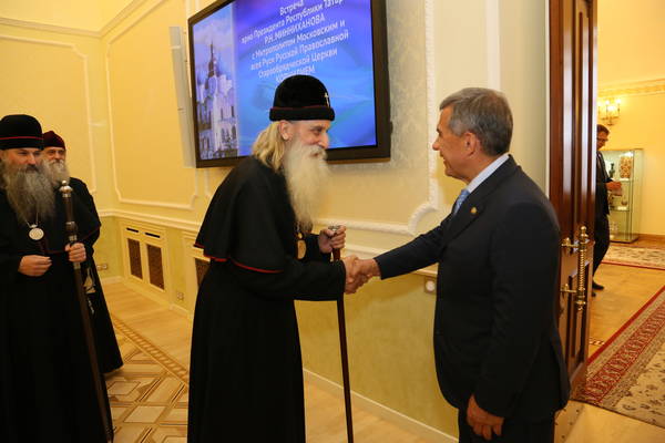 Встреча временно исполняющего обязанности Президента Республики Татарстан Р.Н. Минниханова с предстоятелем Русской православной старообрядческой церкви Корнилием (Титовым): фото Михаила Козловского