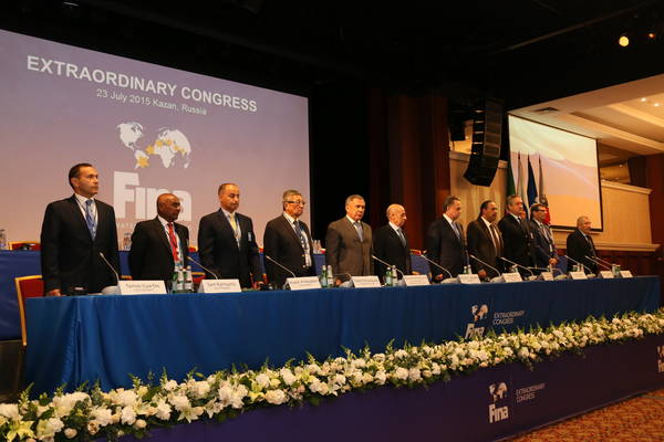 Внеочередное заседание Генерального Конгресса ФИНА, посвященное XVI чемпионату мира по водным видам спорта. Принимает участие временно исполняющий обязанности Президента Республики Татарстан Р.Н. Минниханов.: фото Михаила Козловского
