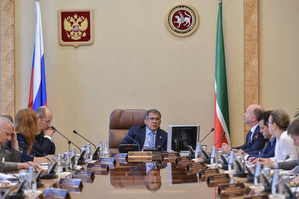 Совет по контролю за ситуацией в сфере оборота алкогольной и спиртосодержащей продукции в Республике Татарстан. Проводит временно исполняющий обязанности Президента Республики Татарстан Р.Н. Минниханов. Фото Марсель Бадыкшин