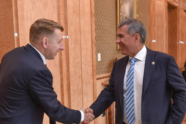 Работа временно исполняющего обязанности Президента Республики Татарстан Р.Н. Минниханова по программе пребывания президента, председателя правления ОАО «Сбербанк России» Германа Оскаровича Грефа. Фото: Михаил Фролов