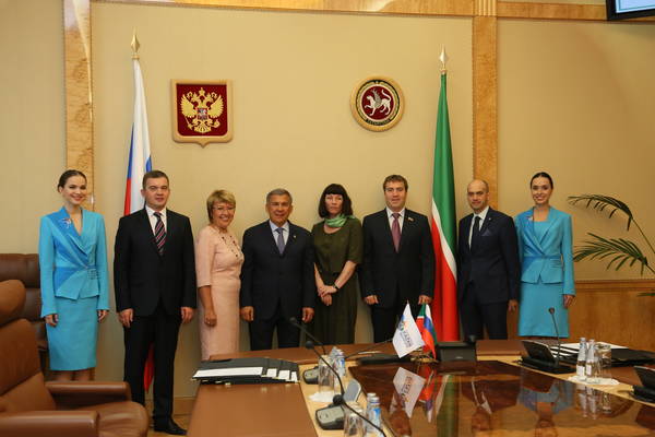 Подписание соглашений о намерениях с партнерами XVI чемпионата мира по водным видам спорта 2015 года в г. Казани. Принимает участие временно исполняющий обязанности Президента Республики Татарстан Р.Н.Минниханов.: Фото Михаила Козловского