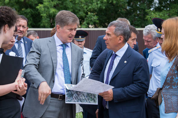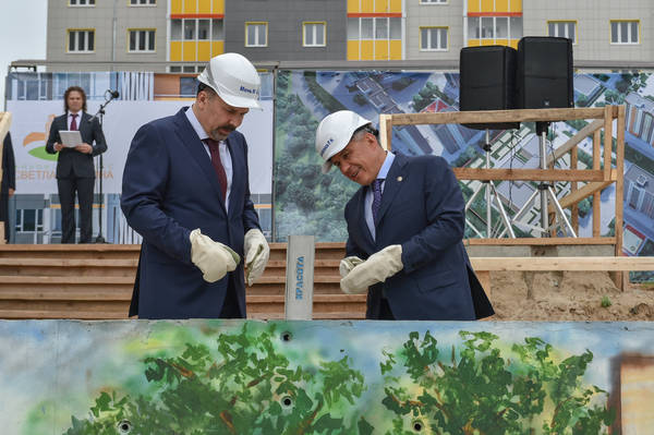 Закладка формулы нового жилищного строительства. Принимают участие временно исполняющий обязанности Президента РТ Р.Н.Минниханов и министр строительства и ЖКХ РФ М.А.Мень. Фото Марсель Бадыкшин