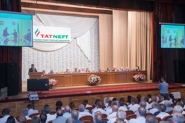 Годовое общее собрание акционеров ОАО «Татнефть», заседание Совета директоров ОАО «Татнефть». Проводит временно исполняющий обязанности Президента Республики Татарстан, председатель Совета директоров ОАО «Татнефть» Р.Н.Минниханов. Фото: Михаил Фролов