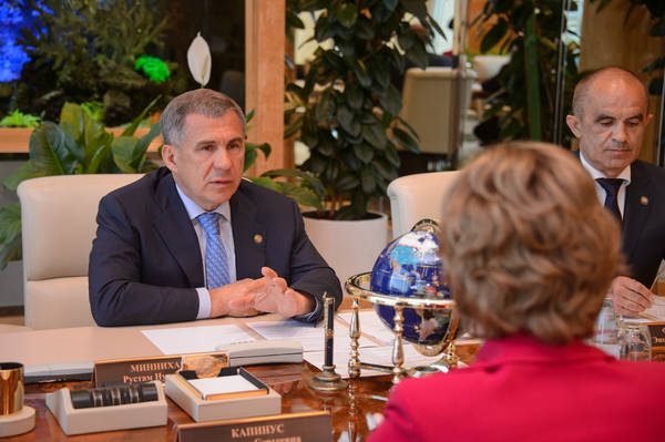 Встреча временно исполняющего обязанности Президента Республики Татарстан Р.Н. Минниханова с ректором Академии Генеральной прокуратуры Российской Федерации Оксаной Сергеевной Капинус. Фото: Михаил Фролов