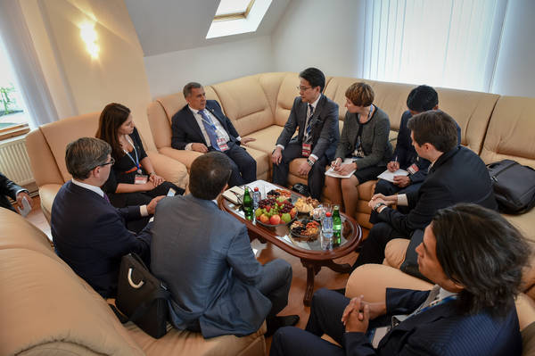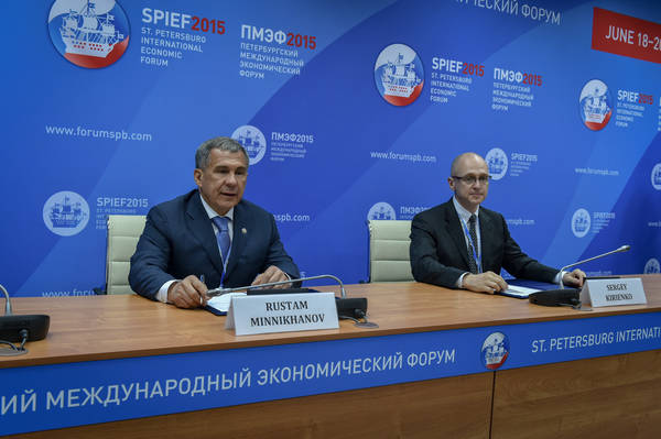XIX Петербургский международный экономический форум. Принимает участие временно исполняющий обязанности Президента Республики Татарстан Р.Н.Минниханов. Фото Марсель Бадыкшин